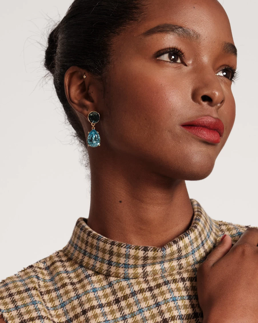 Shine bright with these stunning Aqua Teardrop Pierced Earrings. A classic gem is complimented by an aqua stone that polishes any look, from casual chic to formal sophistication.