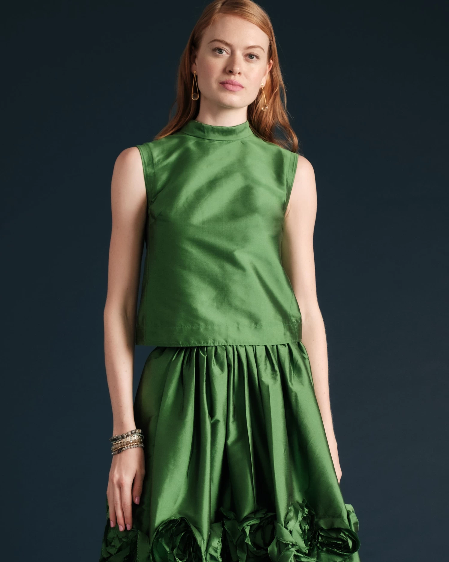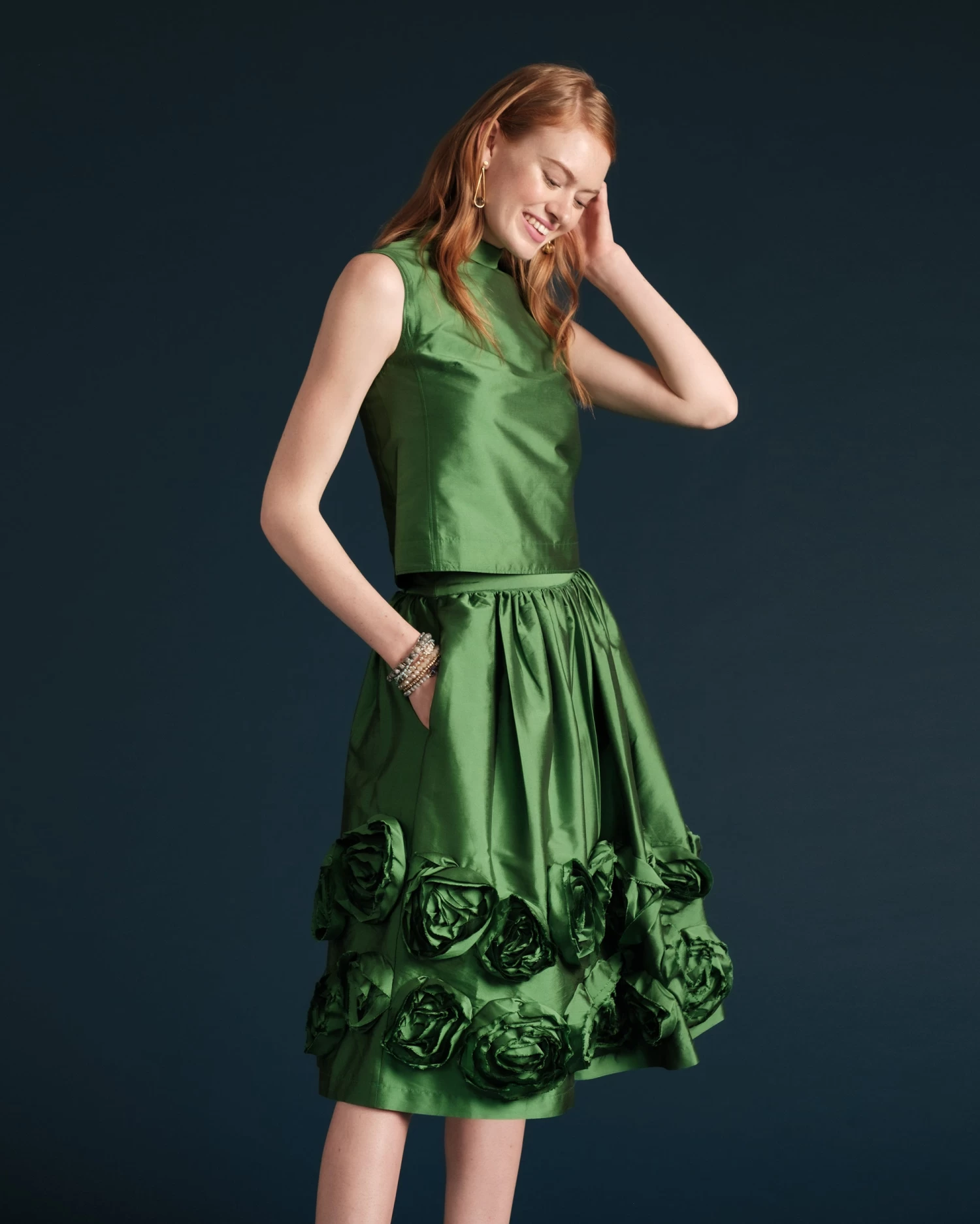 Add a little fun to your looks with our Barbara Skirt with Flowers. A variation of our classic Barbara Midi Skirt, this voluminous skirt has an elastic waistband and gathered top seams, adorned with flower appliques along the trim for a textured touch. Style this separate with a simple blouse and handbag to stand out at every special occasion.
