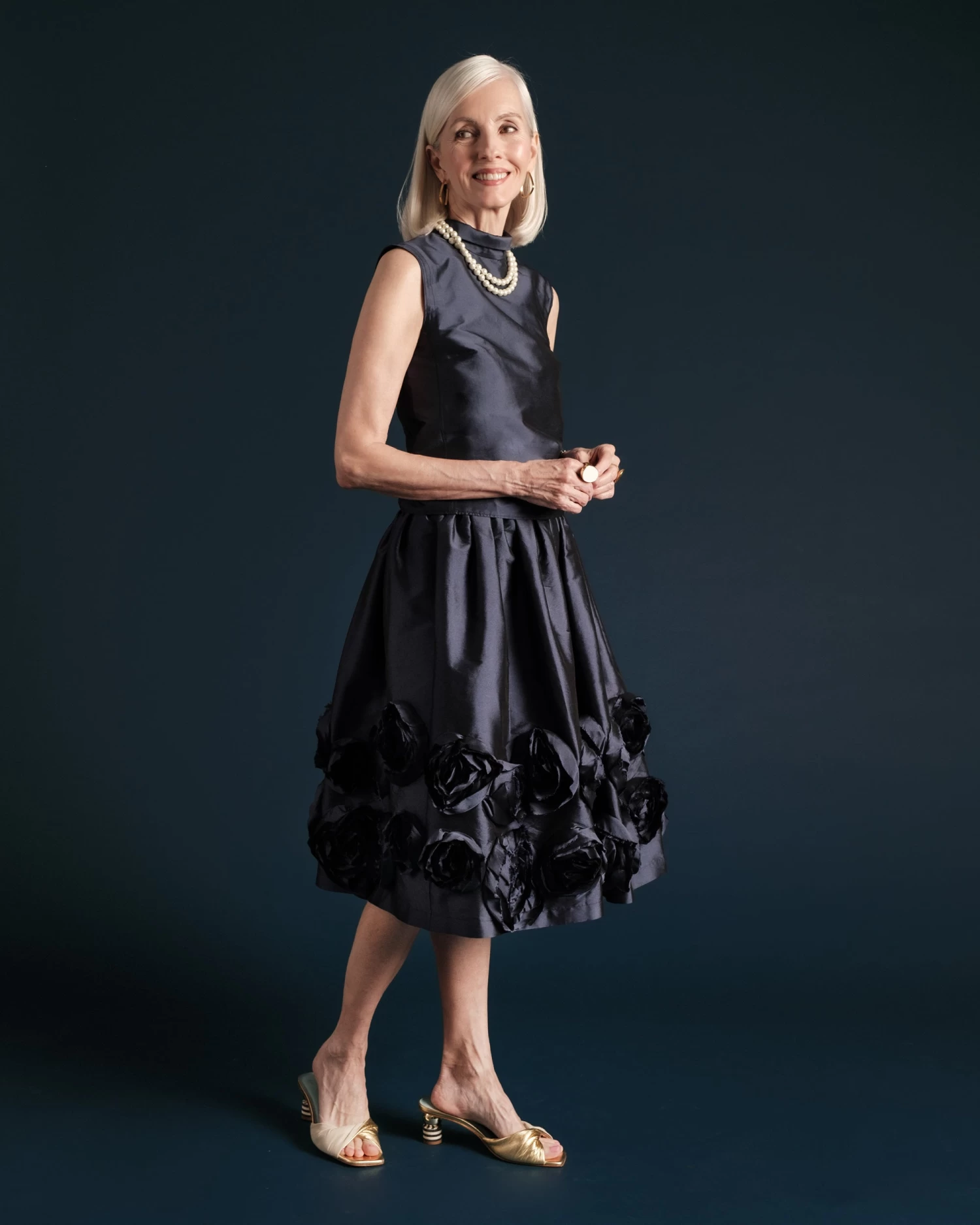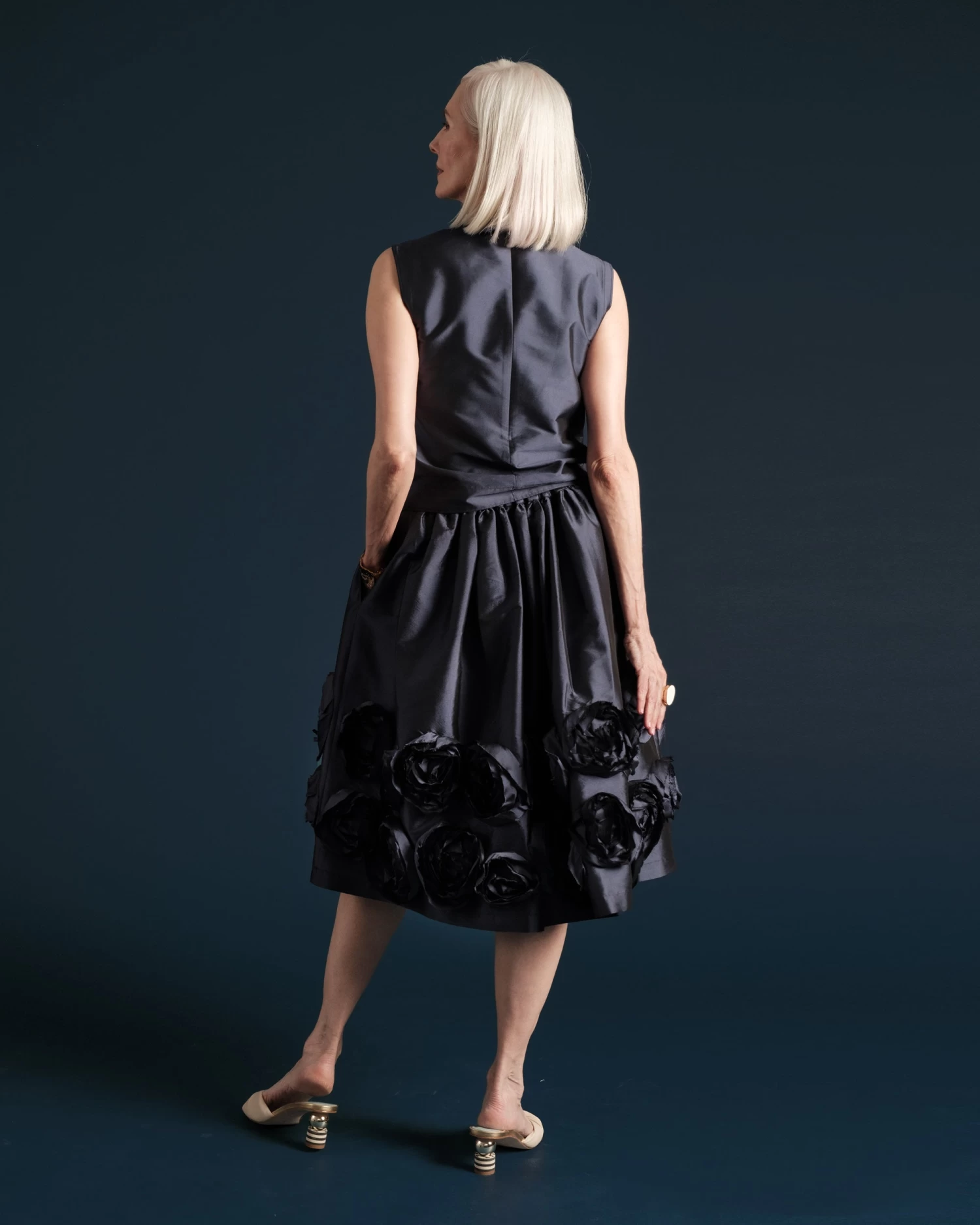 Barbara Skirt Flowers Shantung Navy