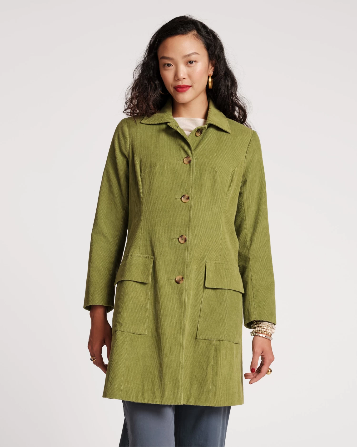 Have a field day with our Barn Jacket. Inspired by the iconic New England field coat, this outerwear has deep front pockets, bold center buttons, and a classic shirt collar – newly designed with mini-pinwale corduroy in eye-catching hues. Add heels or a tote to complete this timeless fall look!