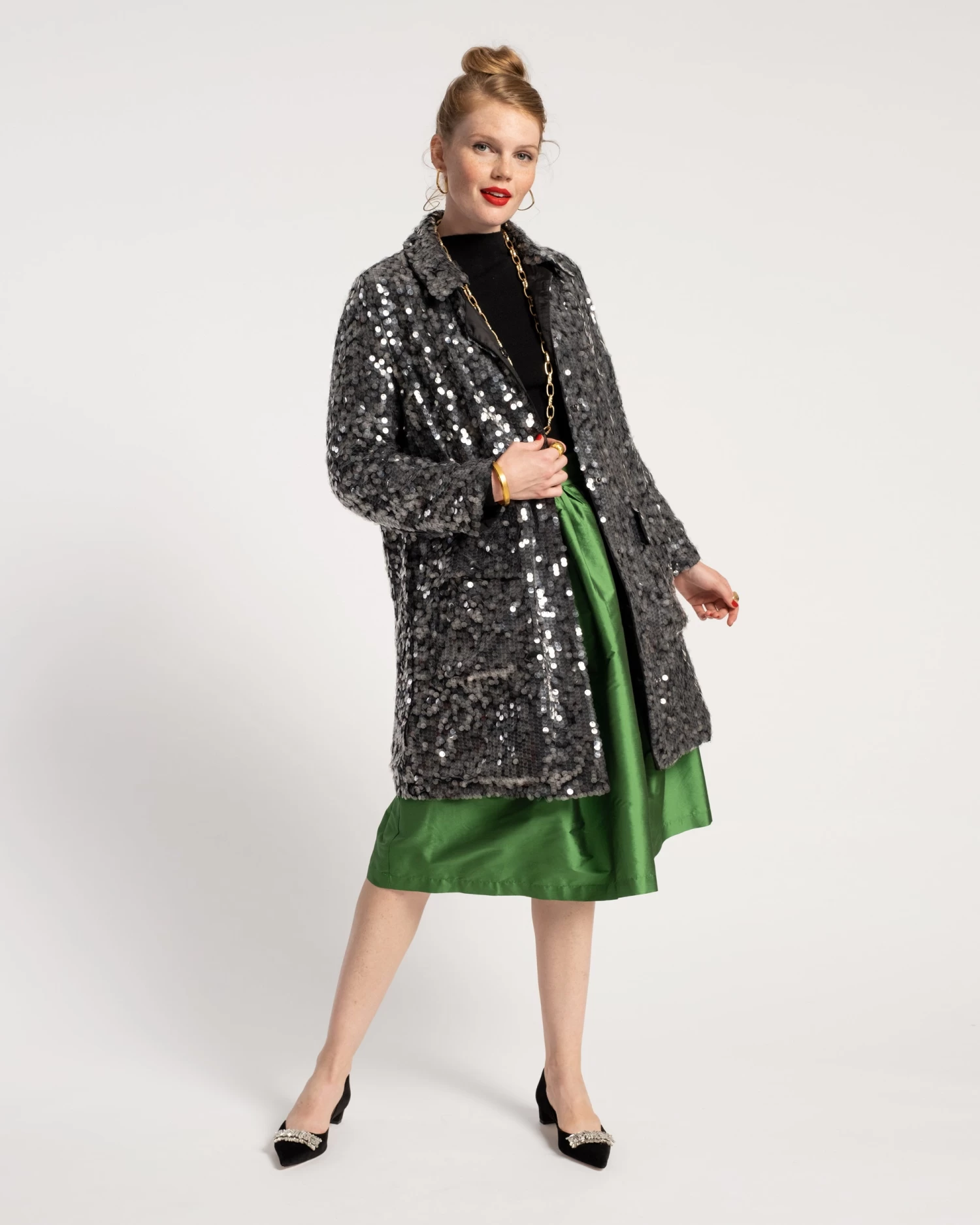 The Barn Jacket is inspired by the iconic fit of the field coat – a New England classic. Re-imagined with sequins, this jacket is the perfect finishing piece to any look needing a little sparkle.