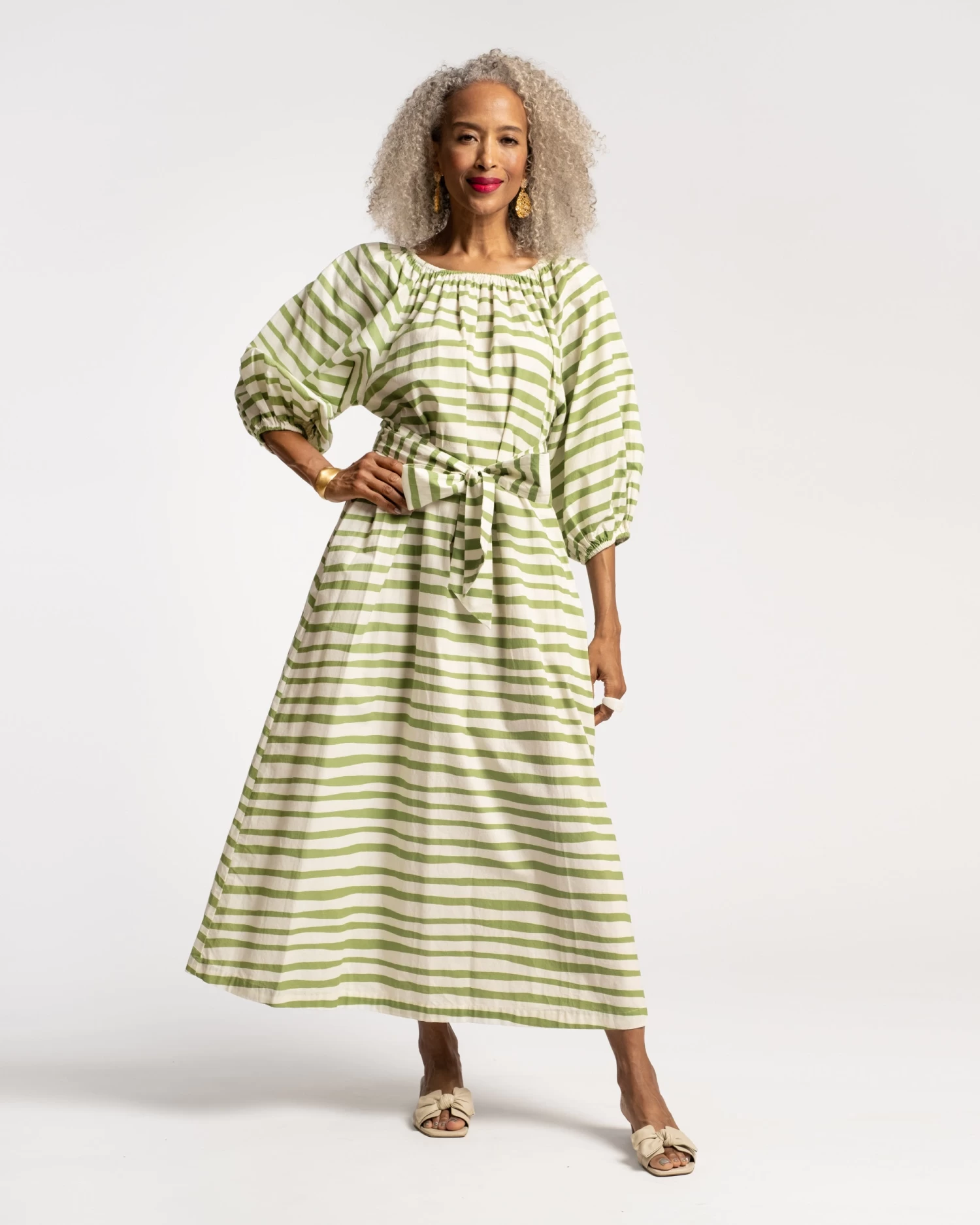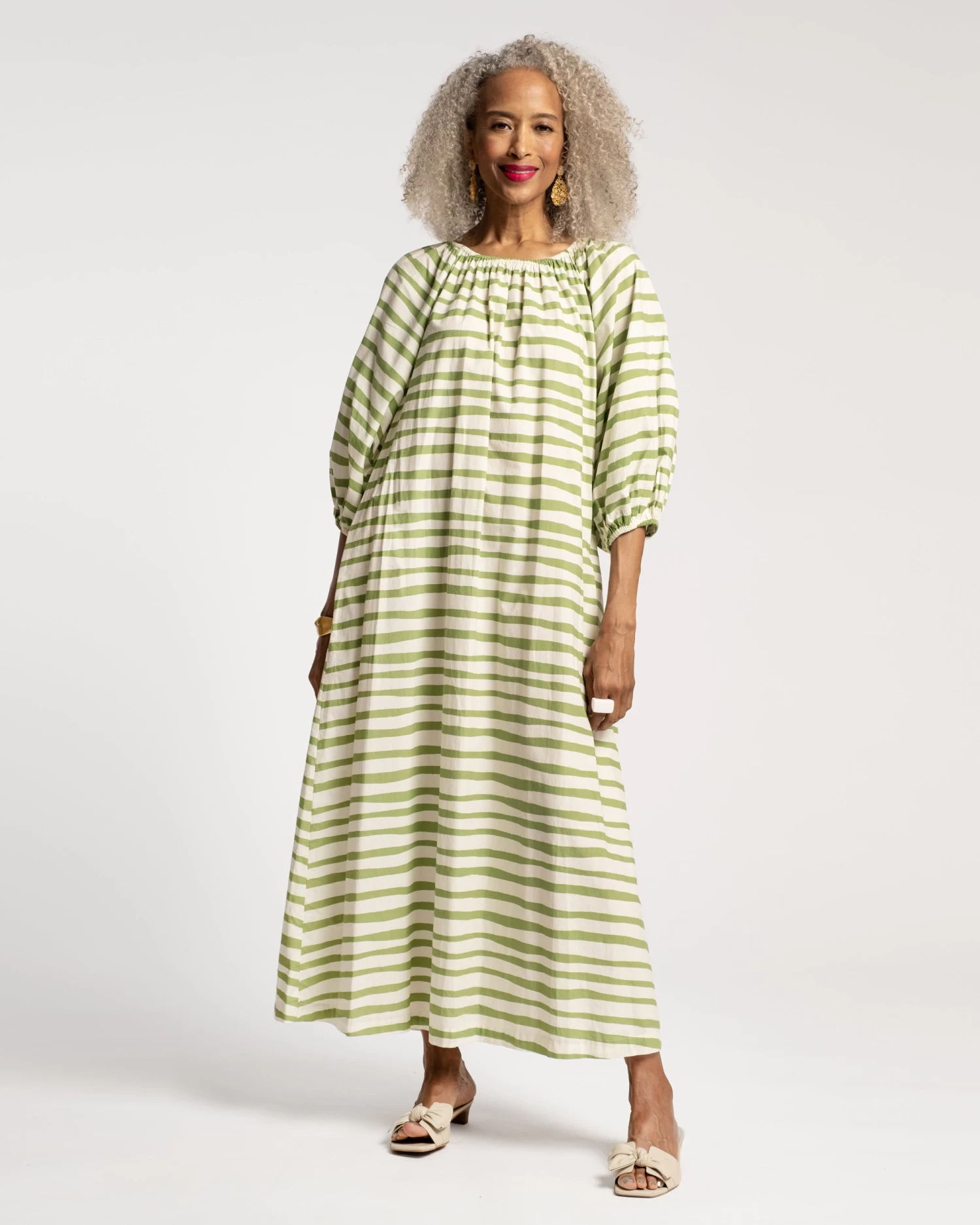Bliss Maxi Painterly Stripe Cotton Basil White