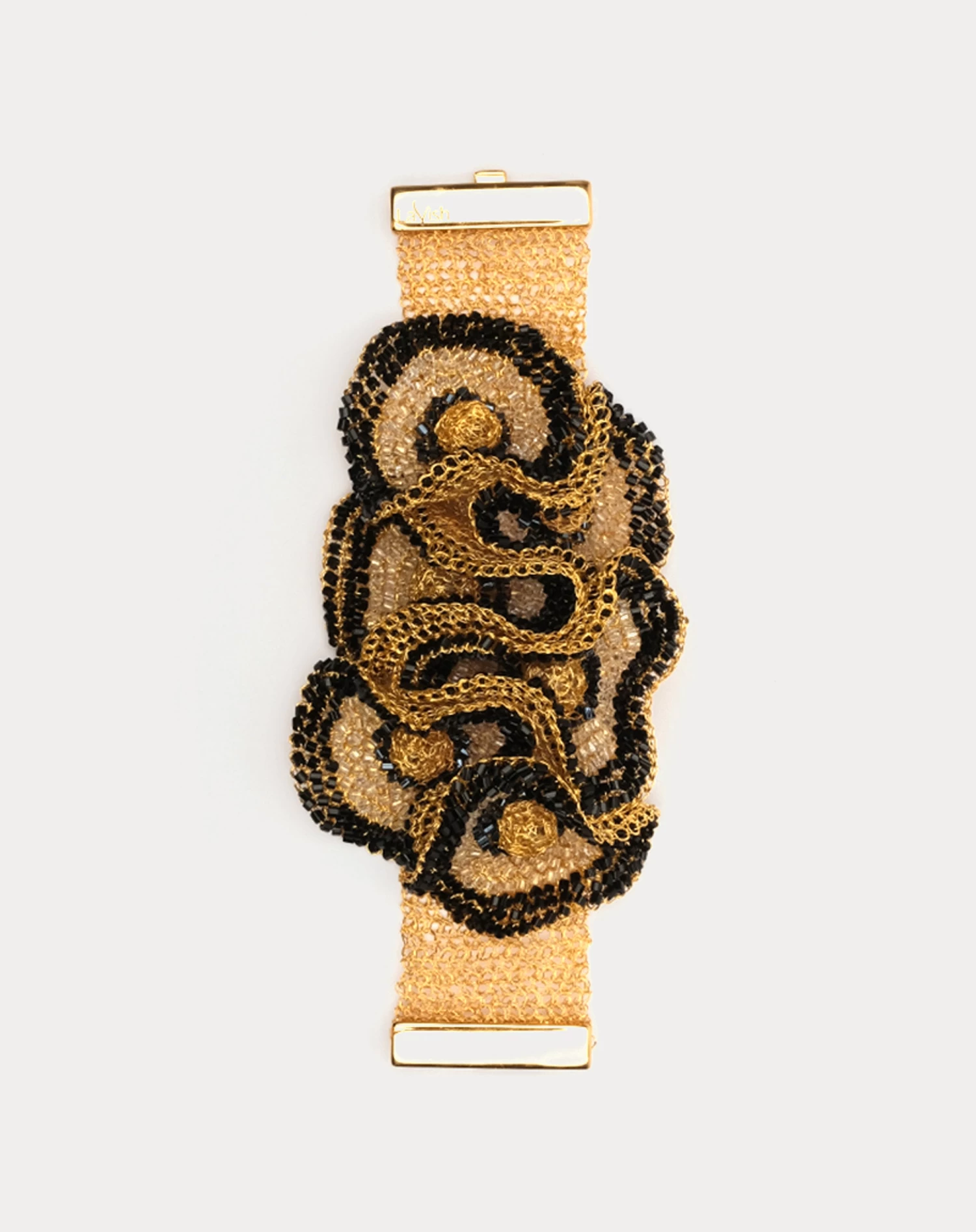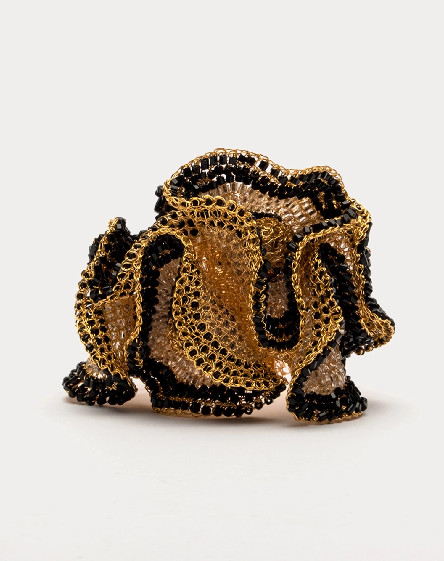 A black and gold handwoven wire floral design adorns this statement making Buttercup Bracelet.