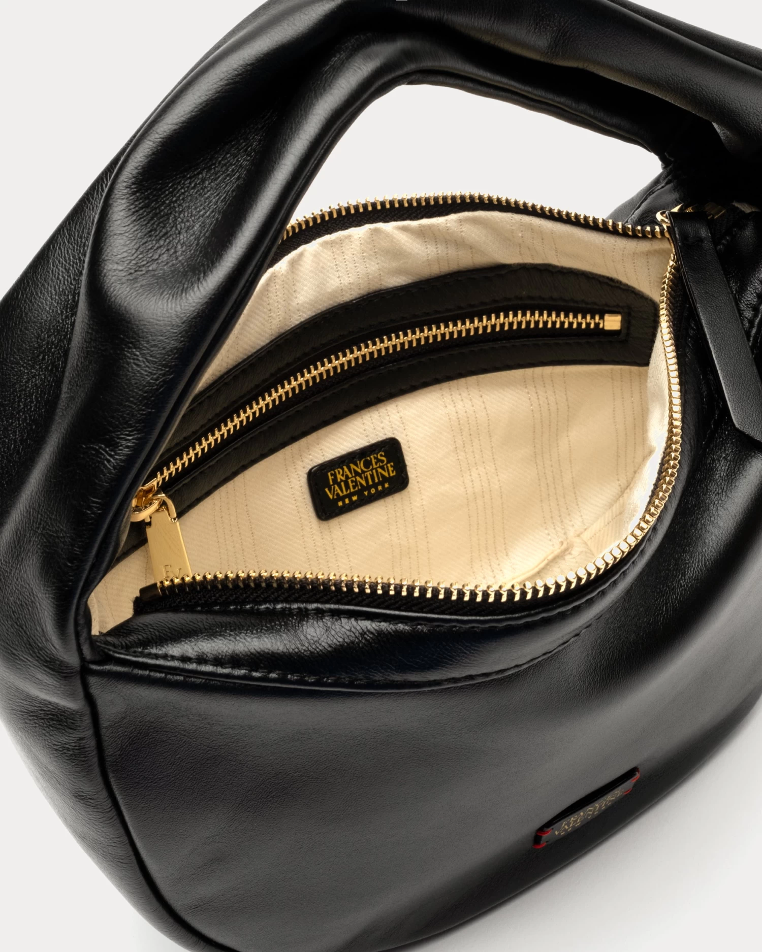 Nappa mini bag. Interior zip pocket. Cotton twill lining.