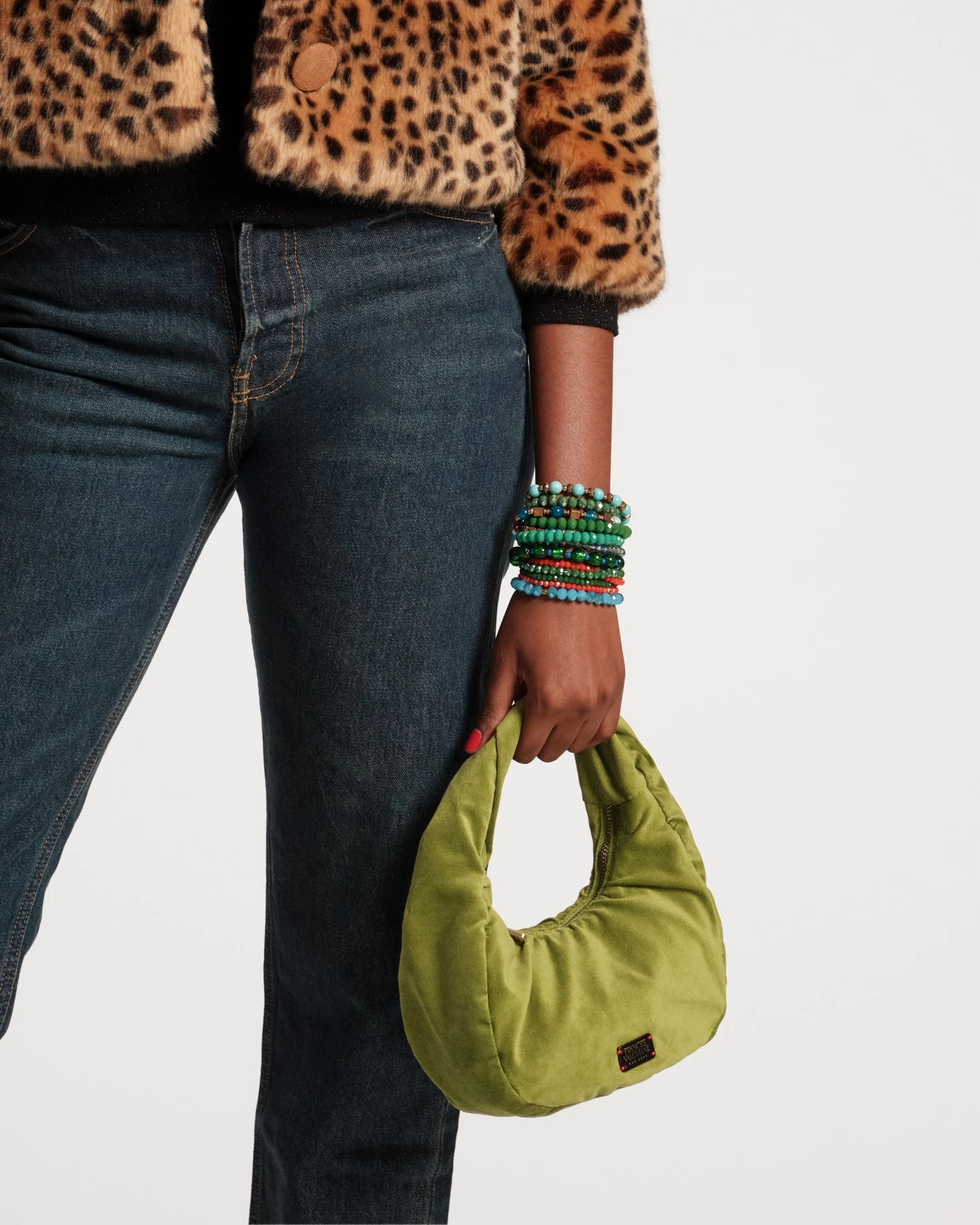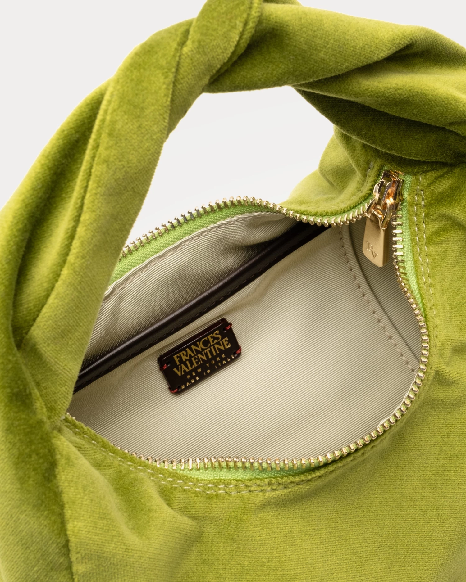 Updated in velvet – Cece is the iconic mini bag that never goes out of style. This slouchy, crescent hobo design features a single twisted handle, zippered top closure, inside pocket, and our FV leather patch logo. Simple and compact, Cece is perfect for toting your everyday essentials and accessories.