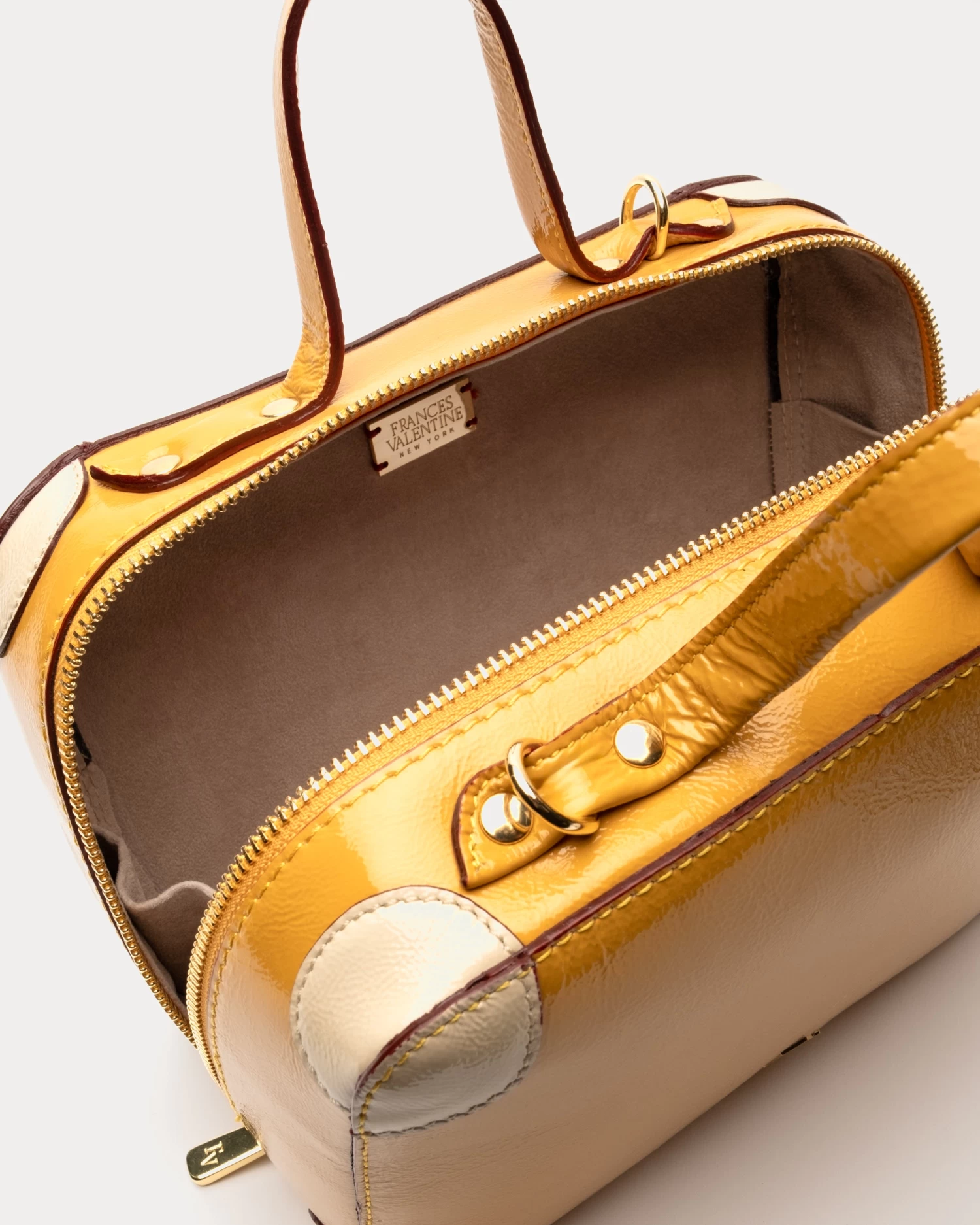 Like a miniature luggage bag, Chip has a structured cube frame with covered leather corners. Complete with a calling card pocket window and adjustable straps – this vintage-inspired design organizes your essentials while accessorizing your outfits.