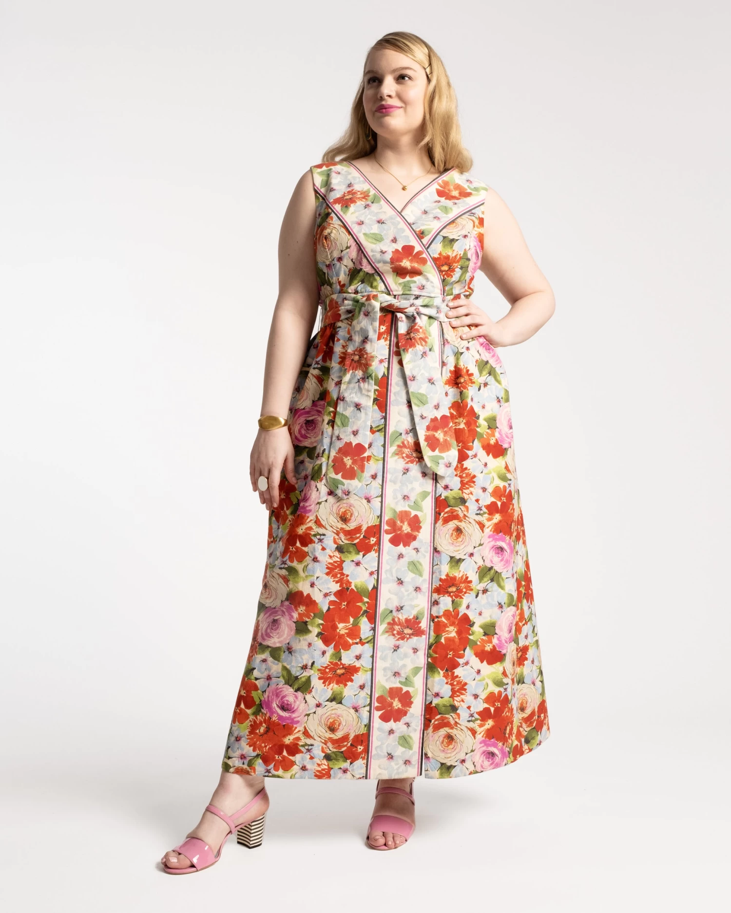 All dressed up with everywhere to go. Colony is a maxi wrap dress with pockets, exaggerated hems, and a back zipper. Classic and feminine, this design is fitted just above the waist, with an adjustable tie that instantly elevates your shape. Style this piece with statement jewelry and heels for a standout formal look.