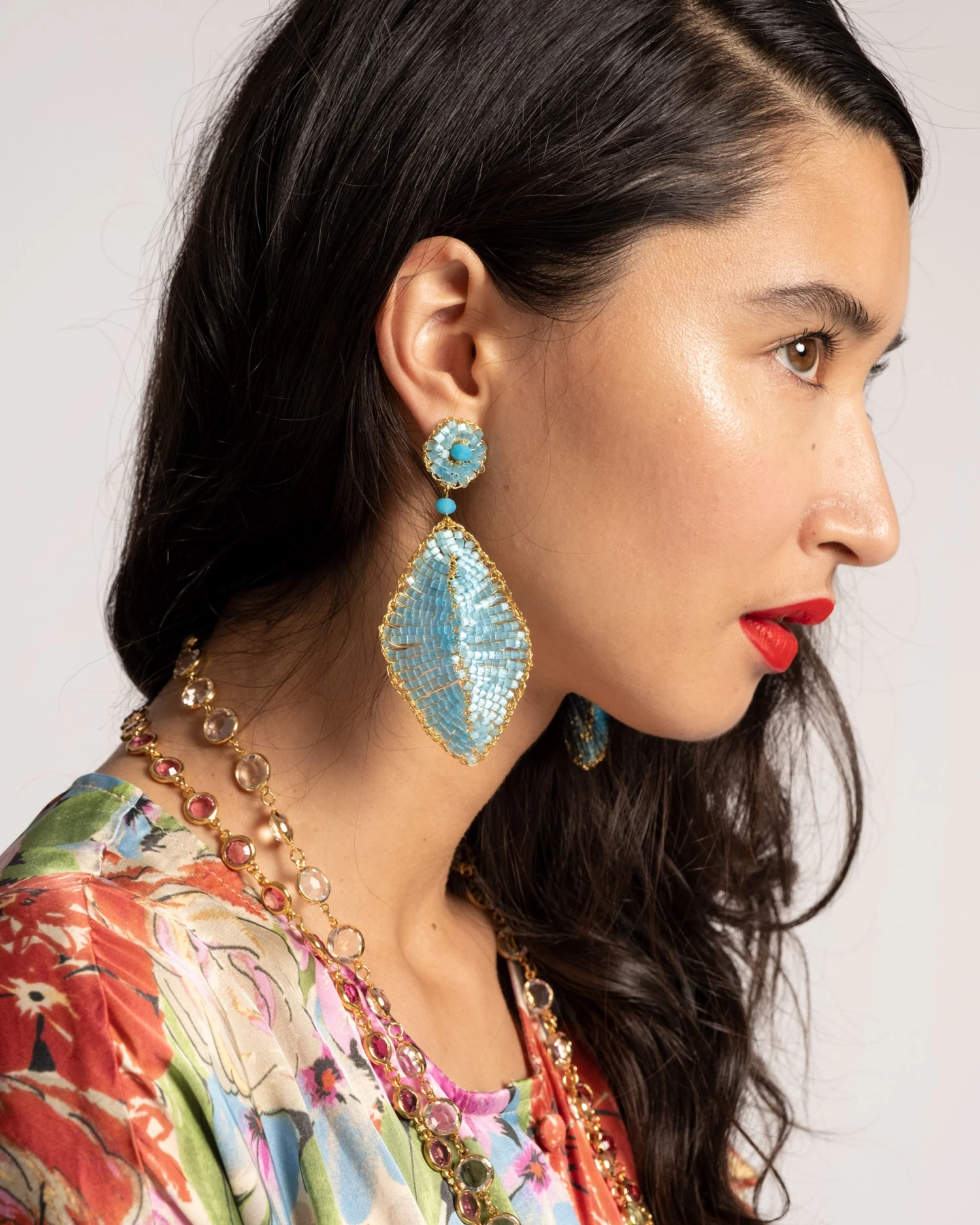 Turquoise crochet earring; hypoallergenic and nickel-free.