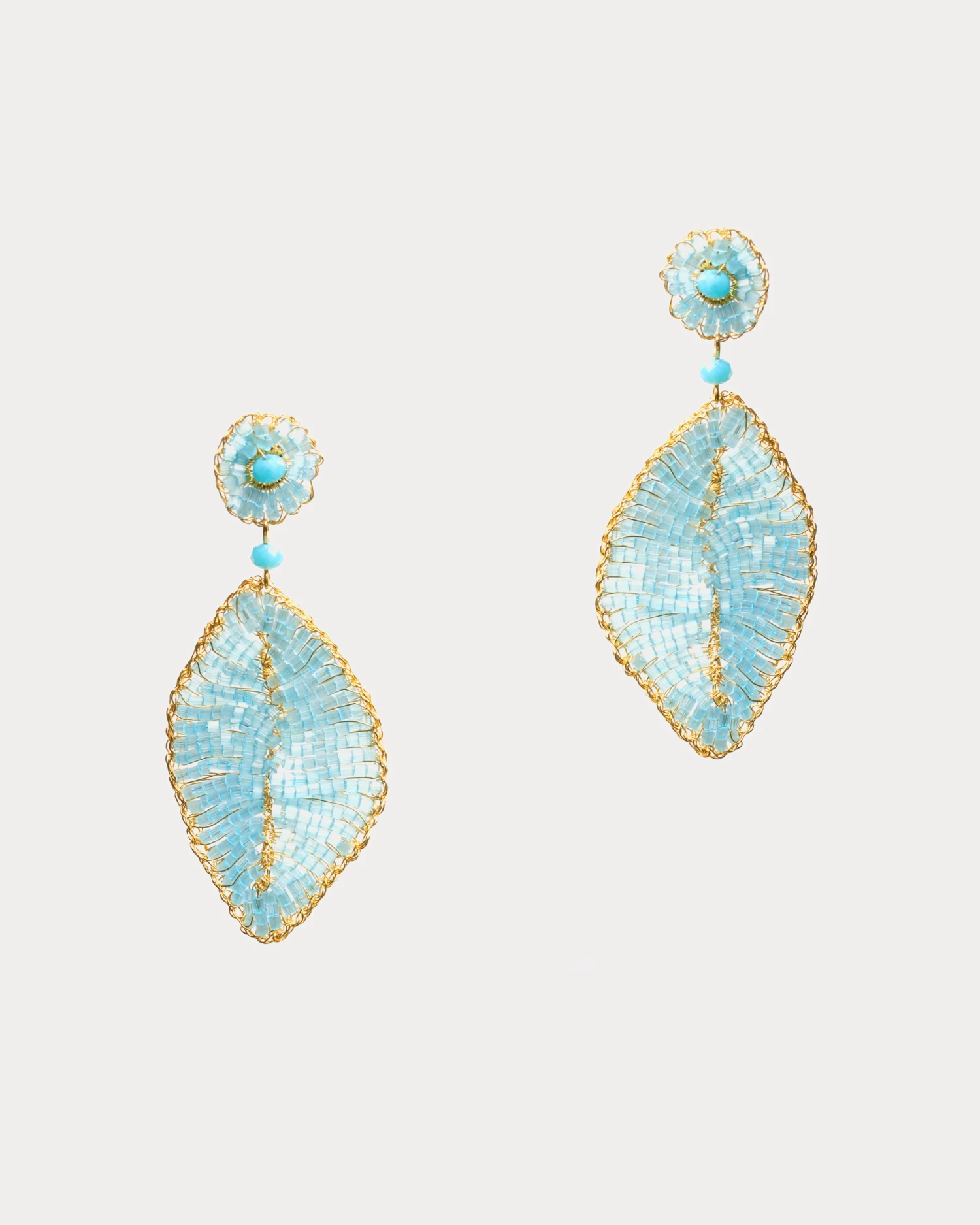 These hand-crocheted, elegant, leaf-shaped earrings are made with 18 karat gold-plated wire by highly skilled Brazilian artisans. They are light, comfortable, and can be worn on any occasion.