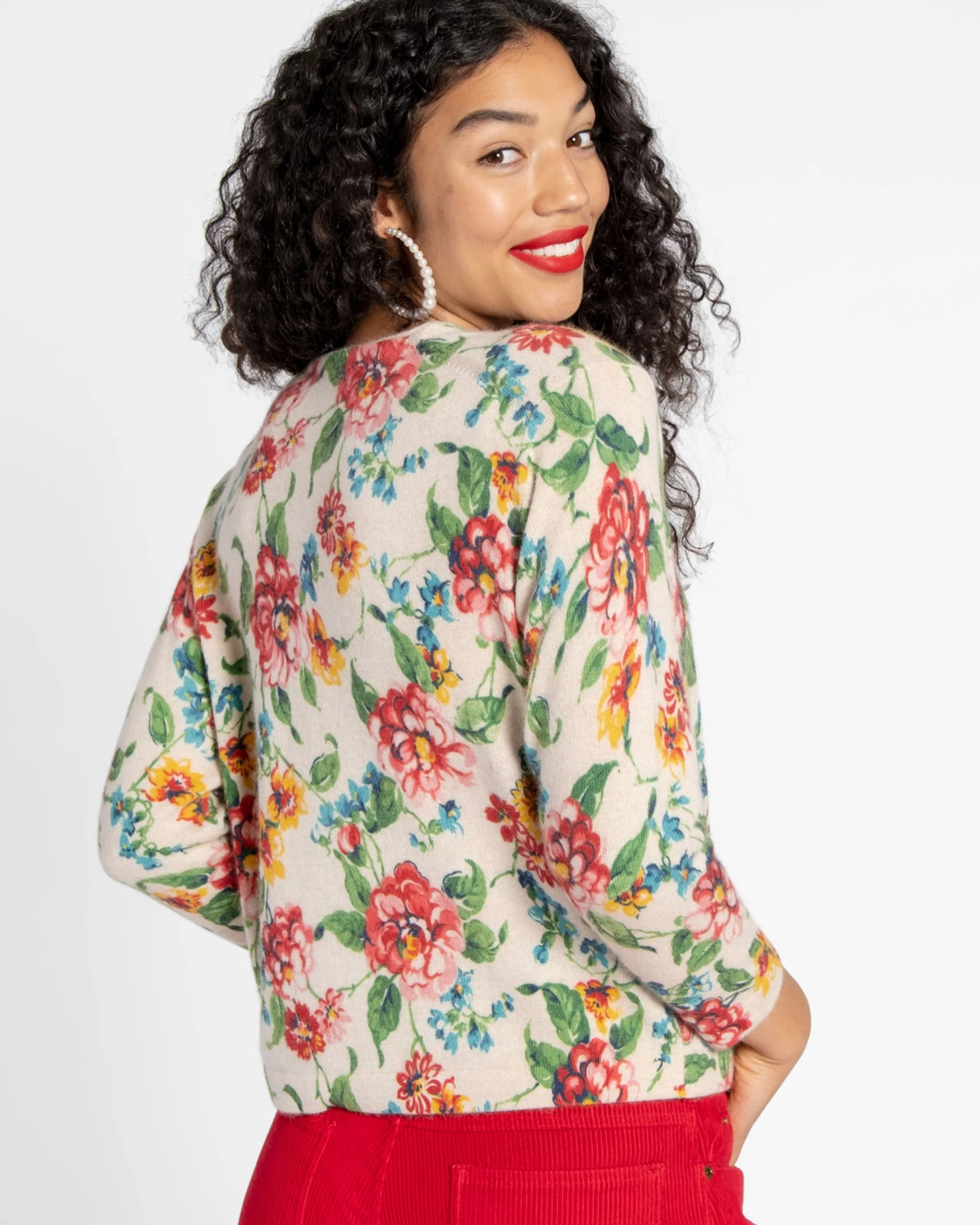 Our favorite Darling Cardigan in our new double knock rose floral print – the perfect layering cardigan for every day.