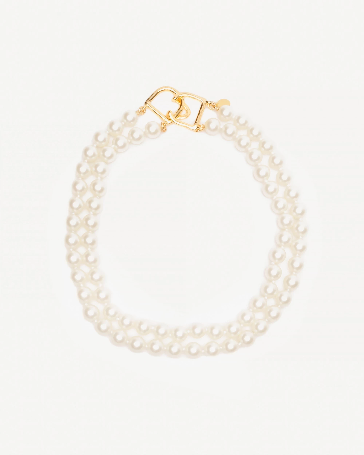 Simple yet elegant,Ā our Double Strand Pearl NecklaceĀ is adorned with a beautifulĀ gold link clasp. Add this necklace to any outfitĀ for timelessĀ look.