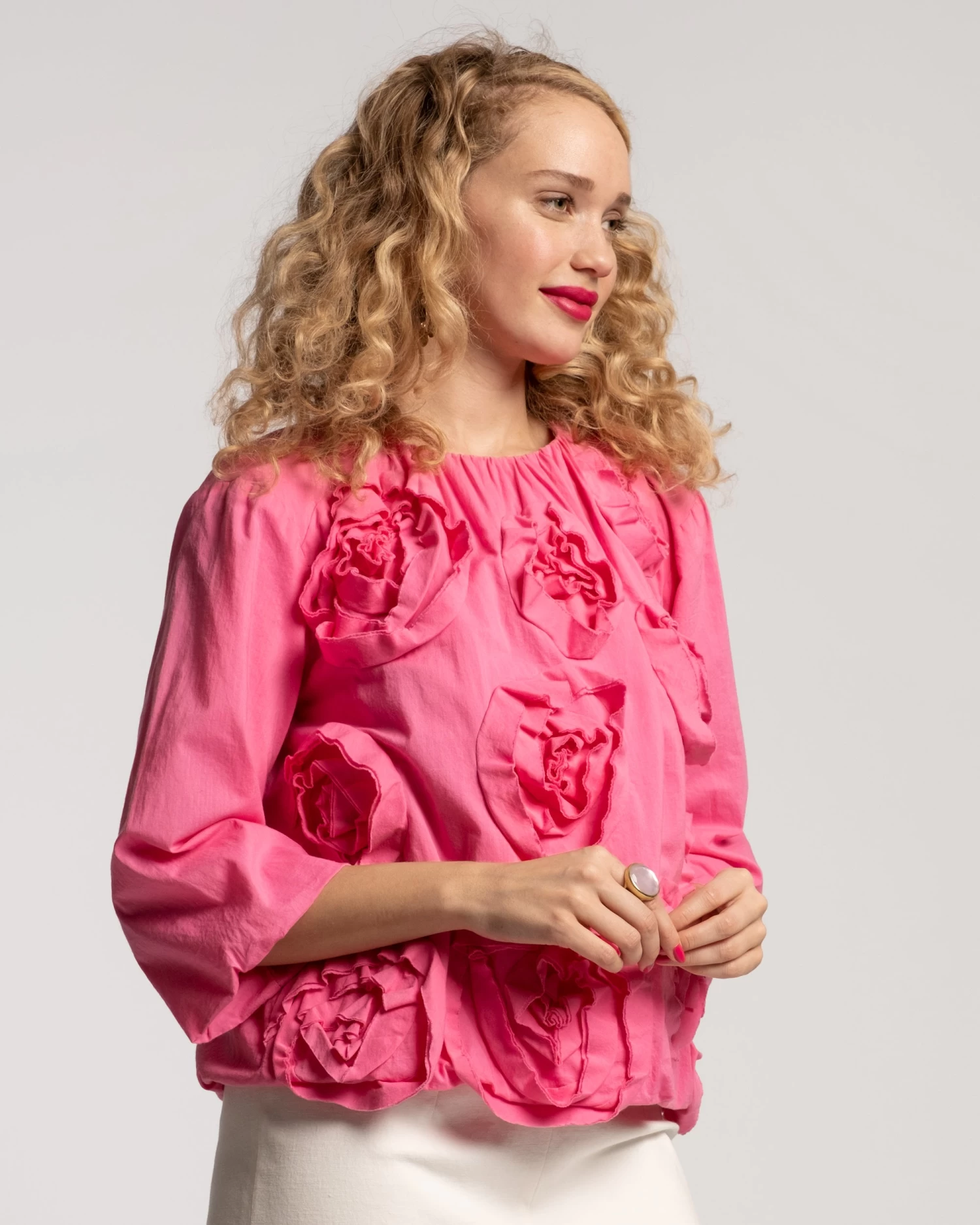 Meet the Emily Ruched Flower Top, our best selling Emily Top reimagined with floral embellishment. Crafted in perfect lightweight cotton poplin this top is also lined for comfort. Pair this top with any of our bright bottoms for a head to toe FV look.