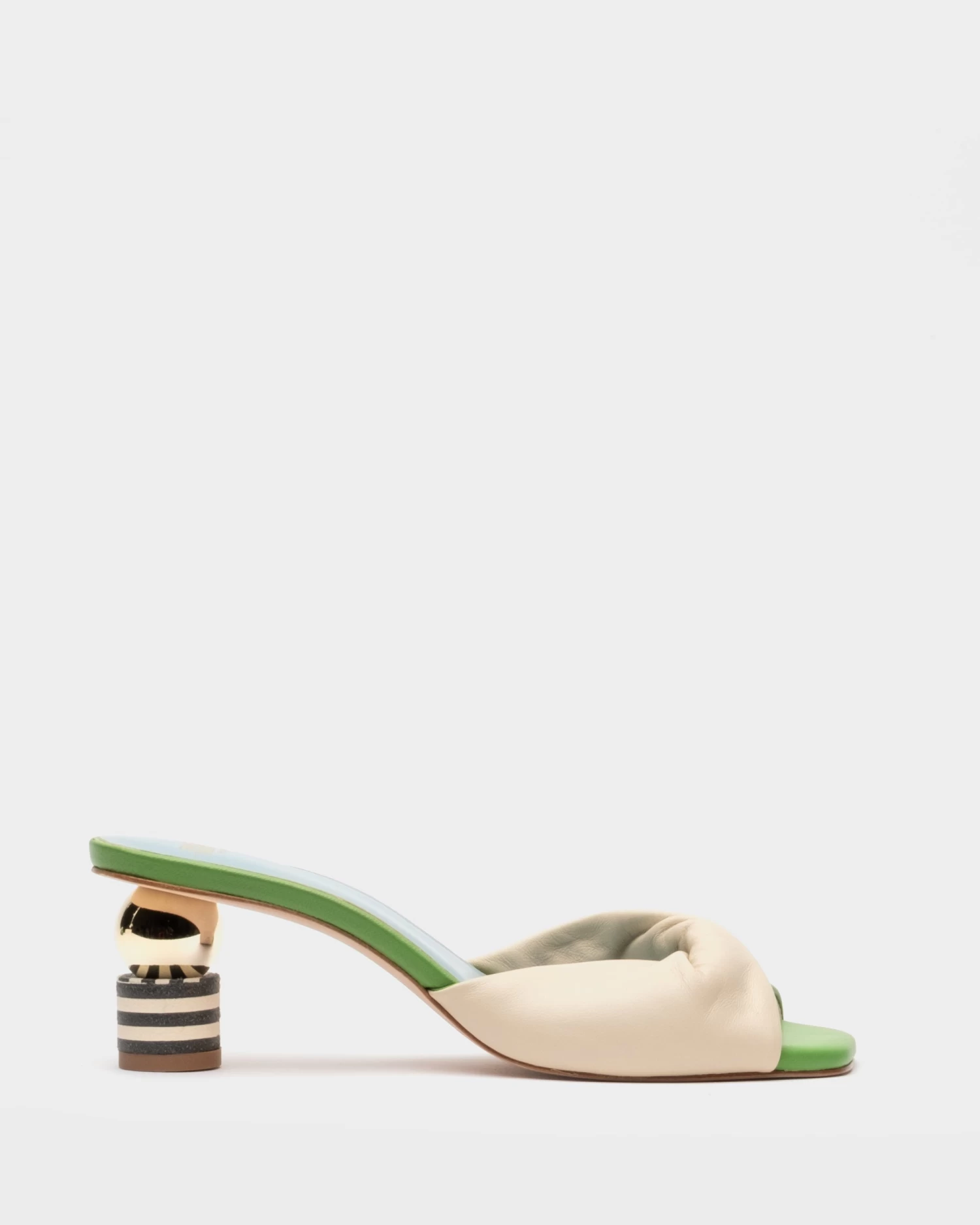 Just for kicks! Our Farah Twisted Kickball Heel is an open-toed sandal with a vintage-inspired block heel and uniquely twisted leather frame. Designed in supple nappa glove leather in striking contrast colors, Farah adds elegance to slip-on style – perfect for day or evening affairs, beautifully paired with any outfit.