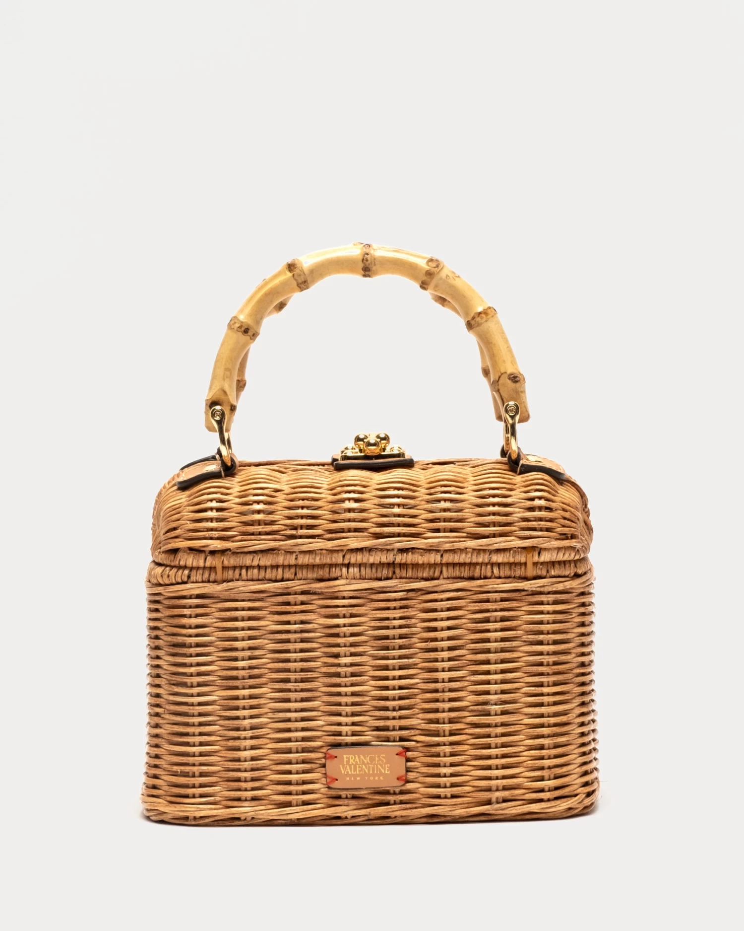 Welcome wicker into your handbag rotation with our Hannah Lunchbox. A basket-woven design with a structured frame, vintage-inspired handles, patterned lining, and spherical metal clasps–Hannah is the perfect carry-all for warm weather outings, from park picnics to patio dinners.
