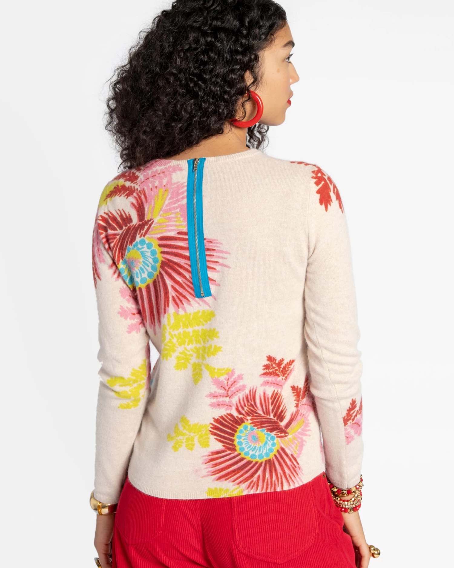 - Contrast zipper on back