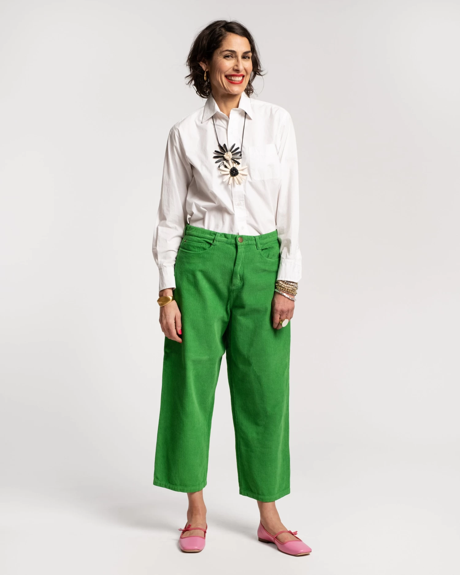 Modeled after vintage bottoms Elyce found while shopping in Paris, our Jane Corduroy Pant is a brightly-colored styling piece made to cheer up your closet. Newly designed with mini-pinwale corduroy and a slightly-longer pant leg, these boxy women’s bottoms can be sized up or down depending on your preferred fit.