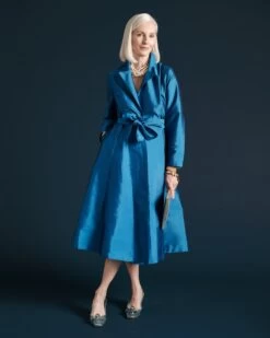 Inspired by one of our favorite icons, Lucille Ball, the Lucille Wrap is a formal midi dress. Uniquely versatile, this open-collar piece with a belted waist can be worn with or without bottoms, cinched in a bow or left ribboned. Lucille’s many styles are securely fastened with an inside tie, so you can feel confident in your fit.