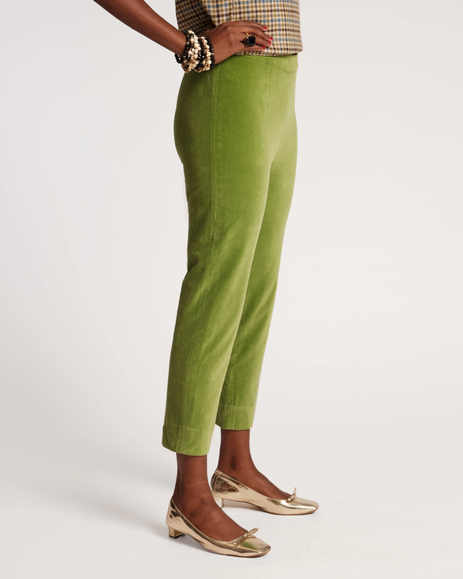 Lucy is our high-rise cigarette pant with a slim leg and side zip fit. Featuring supple stretch velvet in jewel tones, this womenβs design flatters your shape in everyday wear and pairs beautifully with flats or heels.