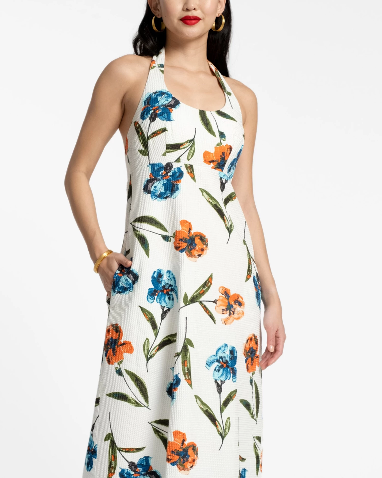 We chose a medium weight waffle weave cotton fabric for our Malia Halter Dress which we think is a perfect dress for all of your summer soirees, whether on a city rooftop or a sandy beach. This dress features a halter tie closure and we reinforced the bust for comfort and support.