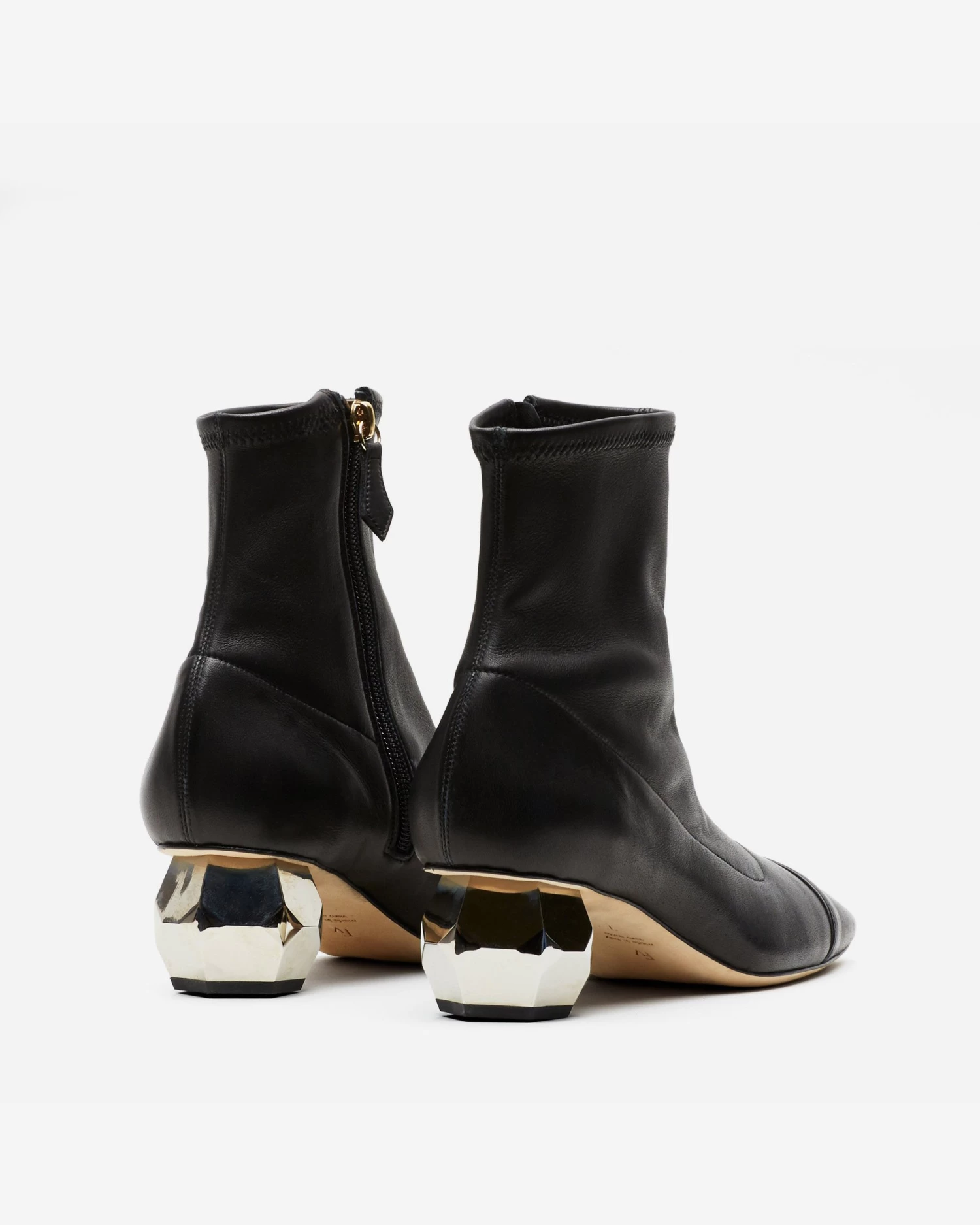Marnie, our stretch nappa leather mid-heel bootie features our patented signature heel inspired by Buckminster Fuller’s omni-triangulated geodesic dome.