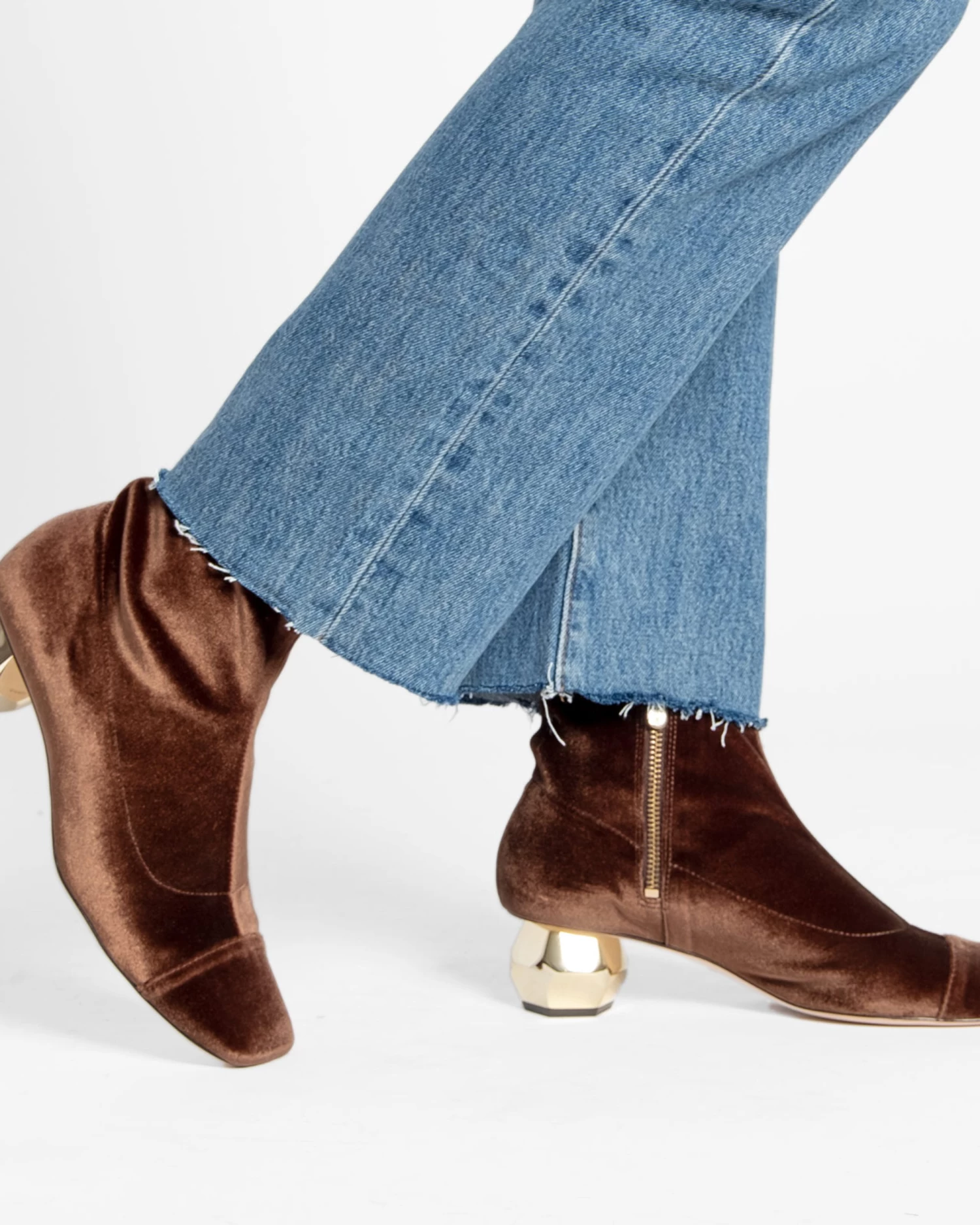 1.25” stretch velvet with leather sole. Square toe. Side zip closure