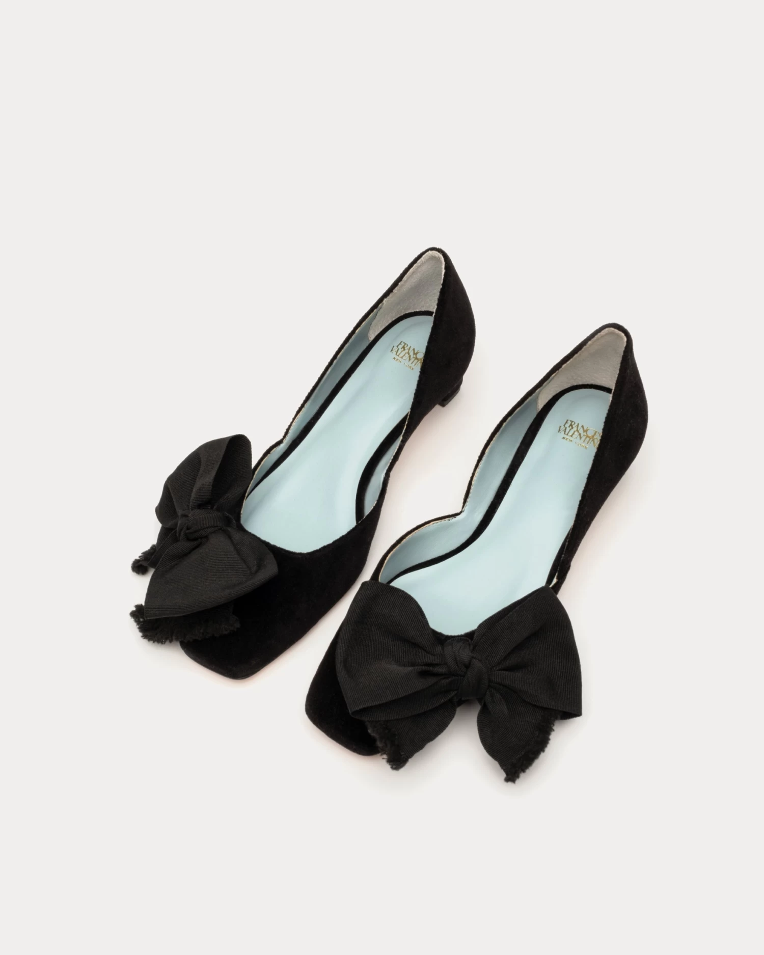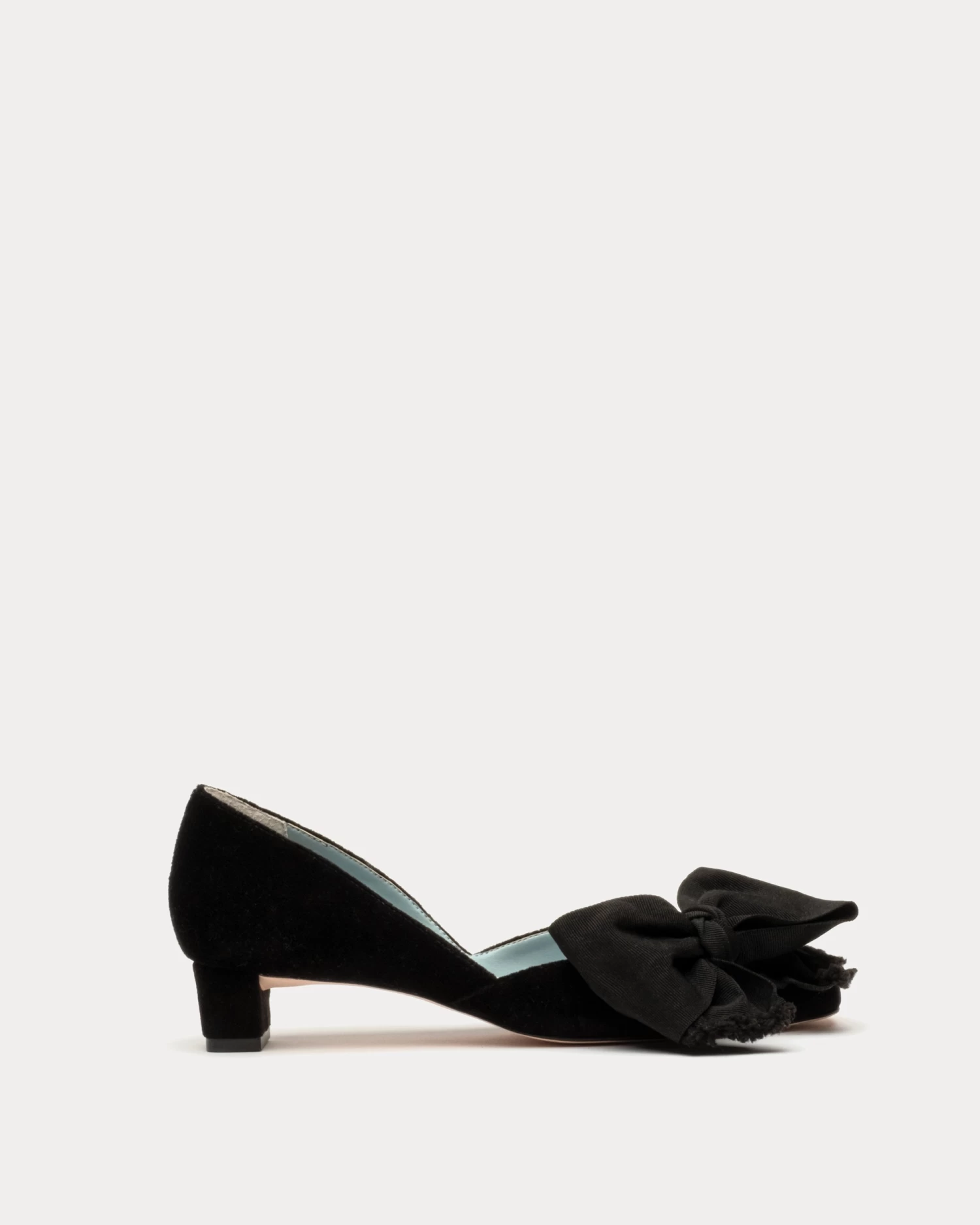McCall is our chic, square-toe d’Orsay pump – accentuating your arches with side cutouts on a mini, covered block heel design. This plush velvet shoe is adorned with our oversized Grace Bow detail, making your shoes the center of attention – no matter the occasion. Keeping your outfit simple and classic, accessorize with some bold jewelry and this elegant shoe.