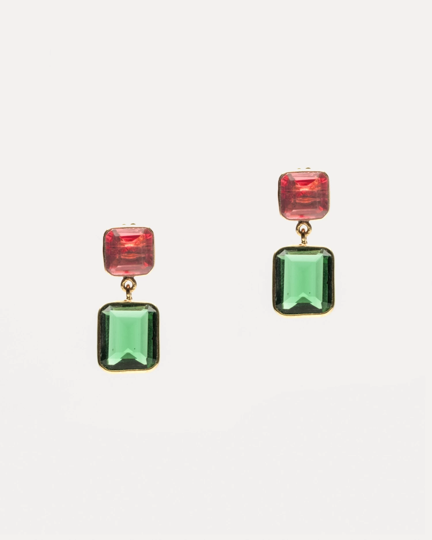 The Melva Stone Earrings feature 18K gold plated delicate two-tone rectangular stones, styling perfectly with any daytime look or for an evening out.