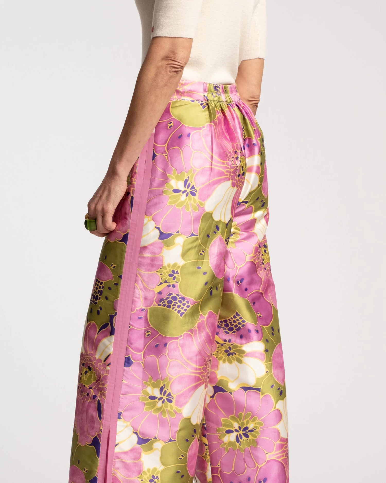 Drawing from Italian architecture’s symmetrical and ornate appearance, our Palazzo Pant is a statement bottom made to accentuate your style with bold prints and flattering fit. The flowy, wide-leg design features a side zipper closure and elastic back, so you can dress confidently and comfortably.Â