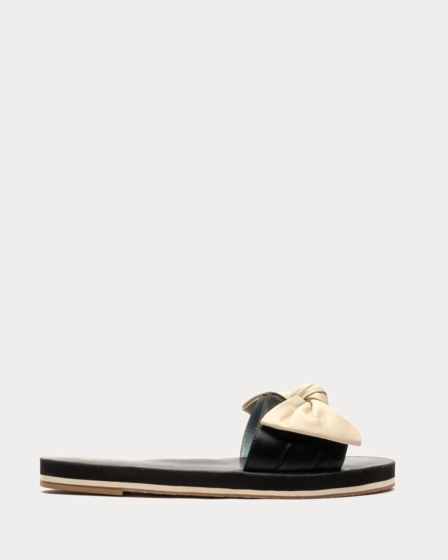 Playing off of our favorite Magnolia Cloud Thong sandals, Sandy is a cloud-like slide-on for sunny days – easily paired with a dress or tunic. Adorned with a bold bow centerpiece, this Nappa leather design has a cushy sole for comfortable wear that supports you all season long.