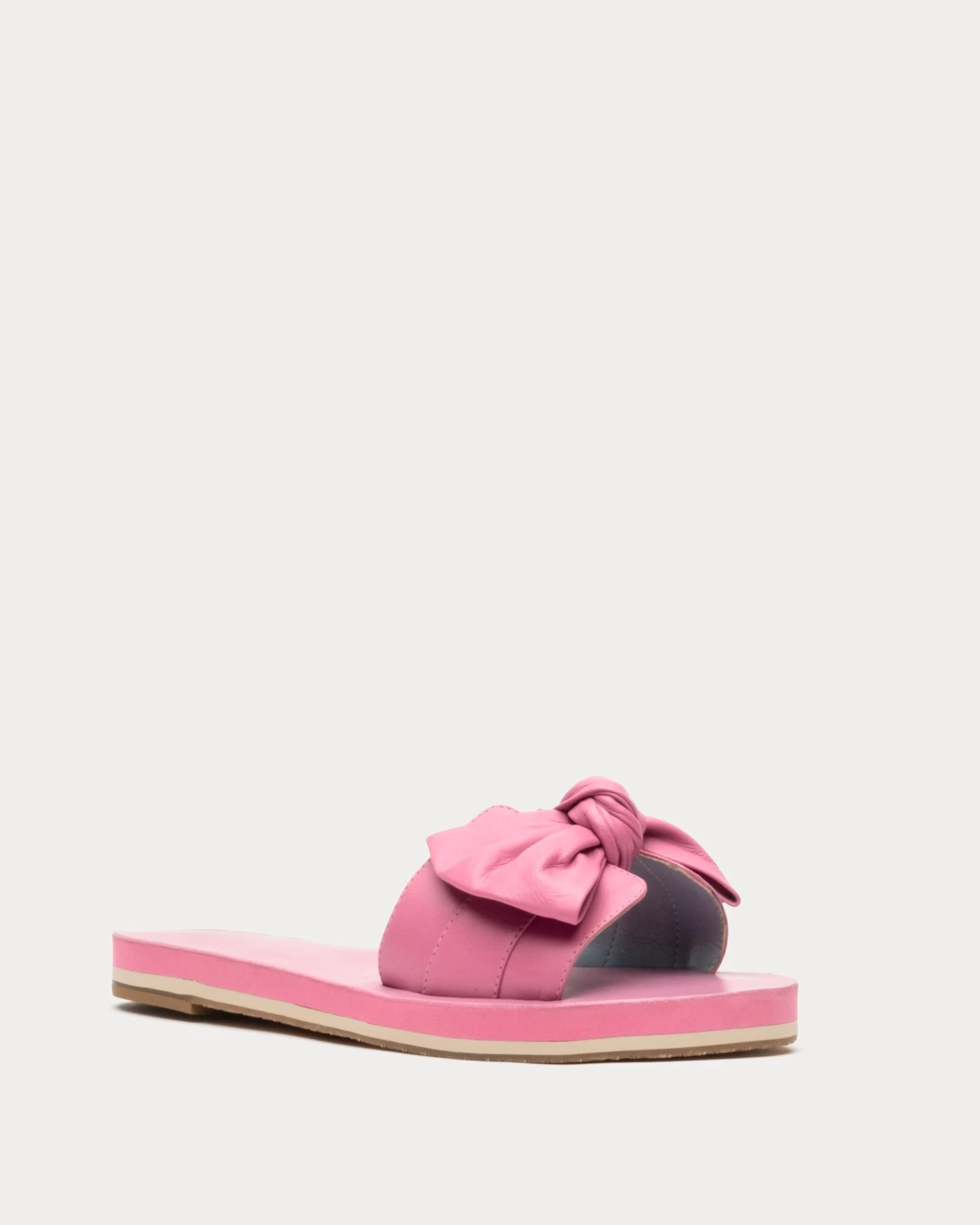 Playing off of our favorite Magnolia Cloud Thong sandals, Sandy is a cloud-like slide-on for sunny days – easily paired with a dress or tunic. Adorned with a bold bow centerpiece, this Nappa leather design has a cushy sole for comfortable wear that supports you all season long.