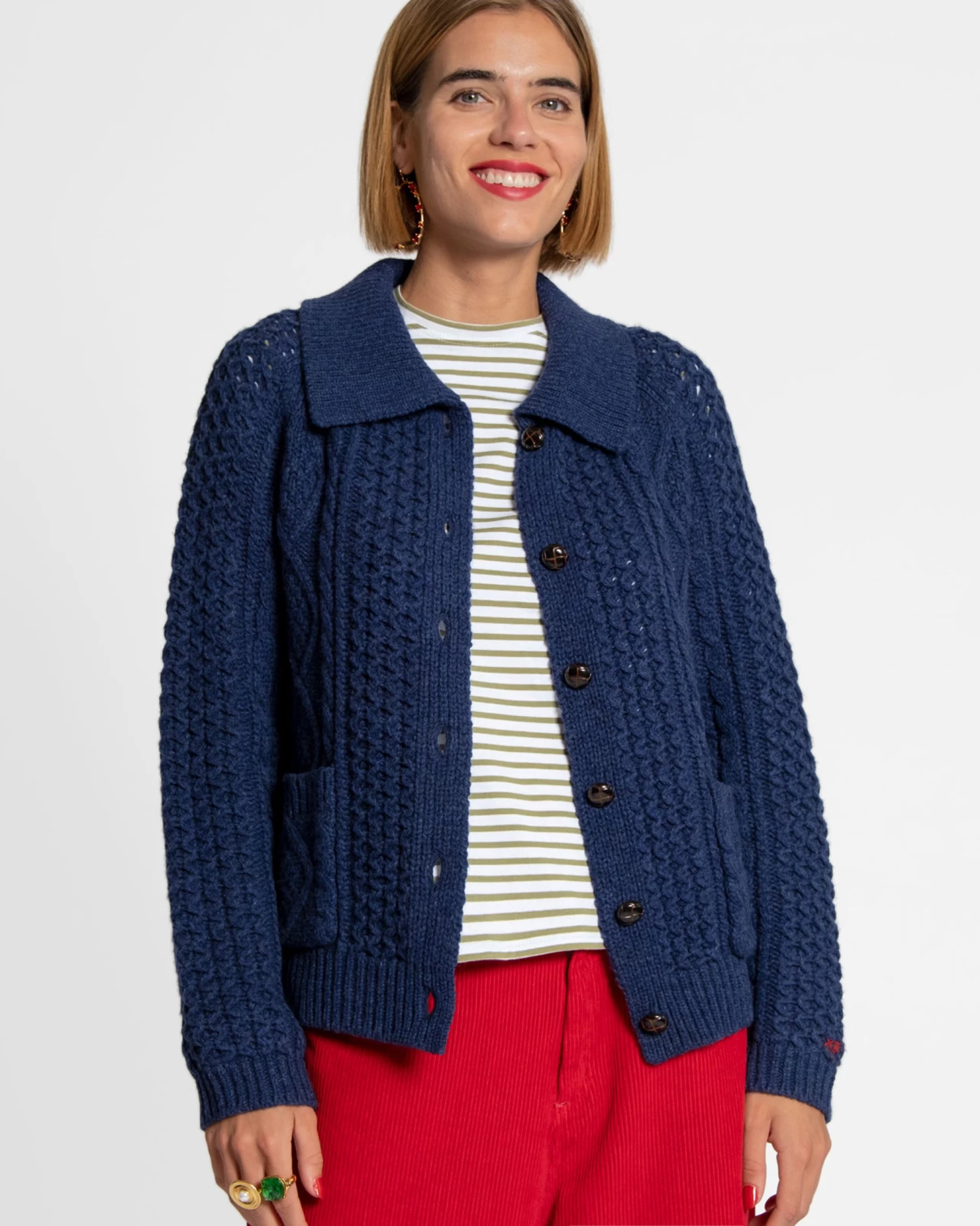 Equal parts stylish and cozy, our vintage-inspired lambswool Fisherman Sweater features intricate weaving and leather-finished buttons.